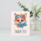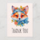 Danke Postcard mit einer Illustration eines bezaubernden Fuchsporträts mit blühender und orangefarbener Krone und Kragen.