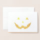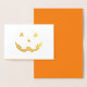 Niedliche orange Kürbislaterne geschnitzte Kürbisgesicht spooky beängstigende lustige moderne Halloween-Folie Grußkarte /Trick oder Treat Einladung. Die Außengrafik der Kürbislaterne aus Gold oder Silber und das Interieur aus orangefarbenem Stoff. In verschiedenen Farben und Größen erhältlich. Karo der Erholung der Kollektion für zusätzliche Party-Vorräte und Dekorationen, Koordination und Abstimmung.