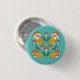 Ein niedliches Pilzkatzenknöpfchen-Button mit Kätzchen mit Pilzen auf den Köpfen, umgeben von Blätter und kleinen Pilzen. Ideal für Katzen oder Pilzliebhaber.