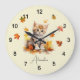 Niedlich Orange Tabby Kitten in Herbstlauben Große Wanduhr
