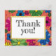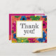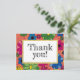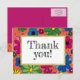 Niedlich und mädchenhaft, Kindergeburtskarte, Dankeschön. Blume in lebhaften Farben setzen sich auf einen lebhaften, orangefarbenen Hintergrund. In der Mitte ist die Nachricht, geschrieben auf einem weißen Feld mit Goldschnitt ist der Text "Danke". Text, Schriftart, Schriftart, Farbe und Platzierung sind vollständig anpassbar.