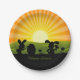 Sonnige Osterdarstellung mit 2 niedlichen Cartoon-Kaninchen, die ein Ostereier auf einem natürlichen Hintergrund malen.
