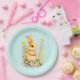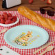 Niedlich Osterhase und Blume auf hellblauen Tellern. Ideal für Ostern, Ferien, Geburtstag und vieles mehr.