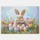 Ein zauberhaftes Osterhasen umgeben von bunten Eiern, die Charme und festliche Freude in einer süßen, spielerischen Szene ausstrahlen.