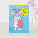 Cartoon-Abbildung eines Osterhasen mit einem großen Ostereier und Sprichwort: "Für dich!" Im Inneren steht: "Hoffe, dass dein Tag "Eier-tra" besonders ist. Alles Gute zu Ostern. Es ist niedlicher als lustig und würde sich gut an einen Osterkorb mit Goodies anhängen...oder eine Flasche Wein...oder ein Geschenk...