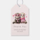 Geschenke Tags mit einer niedlichen Abbildung. Ein paar Otter in rosa Kleidung. Stripte Shirts tragen eine Krawatte, die andere eine Schleife. Umgeben von den Herzen der Liebe.