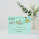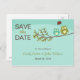 Whimsikal Save the Date Einladung Postkarten mit zwei niedlichen Eulen sitzen auf einem Ast mit einem Herz in einer Talk-Blase über ihnen. Hintergrund in Robin's Eiblau. Personalisiert mit Ihren Informationen in dem zur Verfügung gestellten Raum. Hier finden Sie die passenden Porto-Briefmarke:
