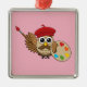 Niedlich Painter Owl Cartoon Ornament Aus Metall