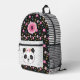 Ein niedliches Panda-Bärengesicht mit koordinierenden Mustern, darunter ein Schwarz-Rosa-Blumenmuster, schwarz-weiße Streifen und ein Schwarz-Weiß-Dreieck-Muster, schmücken diesen hübschen Girls-Rucksack. Personalisieren Sie es mit Ihrer Monogram Initial. So viel Spaß für die Rückkehr in die Schule, oder jederzeit! Entworfen für Sie von BlackBerry Boulevard.