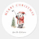 Niedlich Panda spielt Golf Weihnachtsaufkleber. Rustikale Wasserfarben und Lineart Stil schwarz-weiß Panda Bär gekleidet wie Santa Golf spielen. Personalisierter Text mit einem angesagten Script.