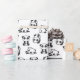 Dieses niedliche, geschlechtsneutrale Muster weist doodle-artige Pandas in verschiedenen Posen auf weißem Hintergrund auf.