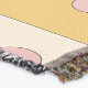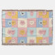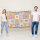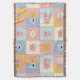 Das Design der pastellfarbenen Decke ist mit einem Patchwork-Muster aus glücklichen Wolken, Herzen und Sternen in sanften Farbtönen wie Gelb, Rosa, Blau und Creme gestaltet. Ideal für gemütliche, fröhliche und skurrile Wohngestaltung.