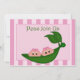 Green Pea Twin Girls Baby Shower Einladung. Zwillinge sitzen in einem Erbsenkot und tragen rosa Bögen. Die Einladung zur Baby Dusche hat einen rosa Streifen Hintergrund. Passen Sie Ihre Party an.