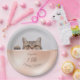 Im oberen Teil befindet sich ein Foto einer niedlichen Pinkkatze. Im unteren Teil befindet sich ein goldfarbenes Textfeld der Rose mit einem benutzerdefinierten Geburtstagstext. Eleganter niedliche Geburtstag Papier Teller.
