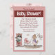 Niedliche rosa Babydusche mit altmodischer Illustration mit niedlichen Waldtieren und einer rosa Baby-Buggy. Suchen Sie nach ähnlichen Einladungen in meinem Shop, eine mit blauem Farbschema und eine mit grün.