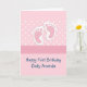 Niedlich Pink baby Girl Footprints am 1. Geburtsta Karte