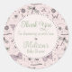 Dieser bezaubernde und feminine Dankeschön Rundaufkleber weist ein von Hand gezeichnet Insektenmuster in Schwarz-Rosa und Salbei-Grüntönen auf. Zu den Insekten zählen Libelle, Schmetterling, Ladybug, Biene, Raupe und Wurm. Der handgeschriebene Satz "Sweet Little Critter" ist über das Muster verstreut, ebenso wie winzige rosa Herzen. Name, Ereignis und Datum können bearbeitet werden. Ideal für die Dekoration von Geschenktüten und Geschenkschachteln für Baby Showers, Baby Birthdays..