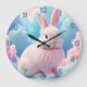 Niedlich Pink Bunny Cotton Candy Clouds Große Wanduhr