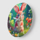 Niedlich Pink Bunny on Green Grass-47567 Große Wanduhr