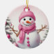 Niedlich Pink Christmas Snowman Keramik Ornament