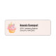 Adressetiketten mit einer Aquarellfarbe, gezeichnet von einem Kuchen mit rosa Vereisung, einem Einhornhorn und farbenfrohen Rose.