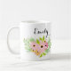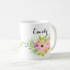 Niedliche rosa Tasse mit individuelle Name. Niedliche rosa Aquarellfarben-Blume. Liebliche Gastgeschenk Hochzeit für eine Blume oder ein stilvolles Geschenk für Brautmädchen. Personalisieren Sie diese, indem Sie den Beispielnamen Emily durch Ihren Namen oder einen individuelle Name ersetzen, der Sie Anzug.