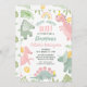 Niedlich Pink Green Girls Dinosaur 1. Geburtstag Einladung