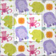 Die gemusterte Stoffkonstruktion zeichnet sich durch eine Monogramm-Initial- und Muster von Baby Dschungeltierfreunden aus - einem Vogel, Affen, Elefanten und Hippo. Dieses moderne und süße Safari-Thema ist in kräftigen Rosa-, Orange-, Kalkgrün-, lila- und Grautönen gehalten.