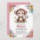 Niedlich Pink Kids Monkey 1. Geburtstag Party Einladung
