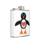 Dieser phantastische Kolben weist einen niedlichen Cartoon eines Pinguins mit großen Augen, einem kleinen Schnabel und niedlichen kleinen Füßen auf. Der Pinguin hat ein großes Herz aus roter Liebe inmitten seines Bauches und die Flügel sind weit offen, um jemanden zu umarmen.