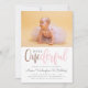 Feiern Sie Ihren ersten Geburtstag mit diesen niedlichen Foto-Geburtstagseinladungen. Mit "onederful" in einem modernen Drehbuch in Imitaten Rose Gold und Pastellrosa. Anpassen Sie einfach unsere Standard-Fotovorlage mit einer Ihrer Tochter! Ihre Party-Details erscheinen in einer einfachen Sans-Serif-Typografie mit einem süßen Skript-Schriftart für den Namen Ihrer Tochter. Auf der anderen Seite ist ein Polka-Punkt-Muster in weiß gegen rosa.