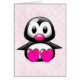 Pinguin Design in Schwarz und Kaugummi pink mit einem hellrosa / Rose Hintergrund.