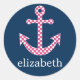 Niedlich Pink Polka Dot Anchor mit Individuelle Na Runder Aufkleber