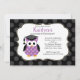 So sehr niedliche Klasse von 2013 Kindergarten Abschluss oder Grundschule Abschluss Einladung mit einem adorable Polka Dot lila Eule mit einem Abschluss Robe und Graduierung Cap Set auf einem schwarz-grauen Polka gepunkteten Hintergrund mit einem passenden Rücken. Personalisieren Sie Ihre Party-Informationen und Sie sind alle Set zu gehen! Matching-Dankeschön-Notizen, Sticker & Porto in unserem Shop unter www.celebrateitinvites.com ©JW Illustrationen erhältlich