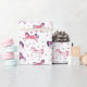Niedliche, rosa, lila und weiße Pferde werden zu einem Muster gemacht, um die perfekte Geschenkverpackung für Mädchen und Pferdefreunde zu machen.