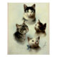 Niedliche Katzen (vier), Vintage Kunstwerke.
