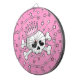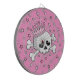 Niedlicher Schädel und Kreuzknochen, umgeben von Sternen in rosa Farbtönen.