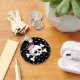 Niedlicher Schädel und Kreuzknochen, umgeben von Sternen in rosa Farbtönen.