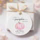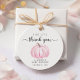Niedliche Mädchen Dusche danken Ihnen für Geschenketiketten mit einer pastellrosa Kürbis Wasserfarbe mit "danke" und "ein süßer Kürbis ist auf ihrem Weg" in einem stilvollen grauen Skript mit Swashes und einfachen Typografie.