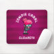 Ein personalisiertes Mauspad mit einer niedlichen Zombie Girl-Illustration mit heißen rosa Haaren und tödlich grüner Haut. Kleidung zum Tragen von Punkrock Ihre Arme überdehnten sich auf der Suche nach Bergen. Kurzer Text sagt: Zombie Grrl mit einem personalisierten Namen darunter. Set auf einem Hintergrund, der in einer magentafarbenen Farbe mit einem Grunge-Look gehalten ist.