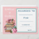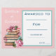 Ein farbenfroh gestaltetes Lesekonzept, das von einem Lehrer für eine Präsentation in Schulklassen oder Schulversammlungen verwendet werden kann. Dieses pinkfarbene Zertifikat zeigt ein Foto von Bibliotheksbüchern und kann personalisiert sein, den Namen und die persönliche Leistung des Schülers einzubeziehen. Das Datum und der Name des Lehrers können ebenfalls personalisiert sein. Einfach und einfach auszufüllen. Die Ressource des guten Lehrers.