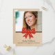 Sweet und charmant Niedlich Bow Abschluss Postcard mit einem skurrilen Polka Dot roten Bogen und Imitat Papier Textur Hintergrund. Ideal, um die Neuigkeiten Ihres Absolventen anzukündigen und Freunde und Familie zur Feier der Leistung einzuladen. Einfach zu anpassen, fügen Sie einfach ein Foto und Ihre Party-Details in den Textfeldern zur Verfügung.
