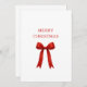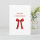 Niedliche Weihnachtskarte mit einem einfachen und minimalistischen Design mit einem roten Bogen und dem Gruß "Frohe Weihnachten". Verwenden Sie die Vorlage, um Ihre personalisierte Nachricht hinzuzufügen.