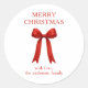 Niedlich Red Bow Frohe Weihnachten Runder Aufkleber