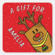 Niedlich Red Reindeer Kid`s Name Weihnachtsgeschen Quadratischer Aufkleber