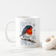 Diese Tasse zelebriert die Gnade der Natur und den Zauber der Schneesaison, in der der Rotrobinvogel die Bühne in den Mittelpunkt rückt und der frostigen Schneeflockszene Wärme verleiht.