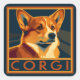 Niedlich Retro Pembroke Welsh Corgi Quadratischer Aufkleber