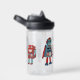Bleibe mit dieser Wasserflasche im Stil der Science-Fiction. Es zeigt niedliche Abbildungen von Robotern im Retrostil in Rot- und Blautönen und ist bereit, mit einem Namen in marineblauer Schrift personalisiert zu werden. Die Grafik umwickelt die Flasche.