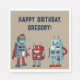 Fügen Sie jedem Party mit diesen benutzerdefinierten Servietten eine Vintage Sci-Fi-Touch hinzu. Mit niedlichen Retro-Robotern in Rot- und Blau-Farbtönen vor bräunlichem Hintergrund sind diese Roboter bereit, mit Ihren individuellen Botschaften personalisiert zu sein und sie somit perfekt für Geburtstagspartys für Jungen und Roboter aller Altersgruppen geeignet.