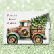 An der Vorderseite dieser niedlichen Holiday-Grußkarte befindet sich ein Retro-LKW, der mit einem Weihnachtskranz geschmückt ist und eine Zuhause mit einem frisch geschnittenen immergrünen Baum trägt. Ein bezaubernder kleiner Beagle trägt eine rot-weiße Weihnachtsmannmütze und flüchtige Blicke aus dem LKW. Roter Text auf einer Seite sagt: "Von unserem Haus zu deinem...", und die Stimmung wird innen fortgesetzt. Der gesamte Text, vorne und innen, kann leicht von Ihnen angepasst werden, um zu sagen, was Sie wollen.